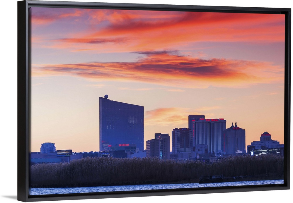 <p>USA, New Jersey, Atlantic City, city slkyine from the west, dawn</p>