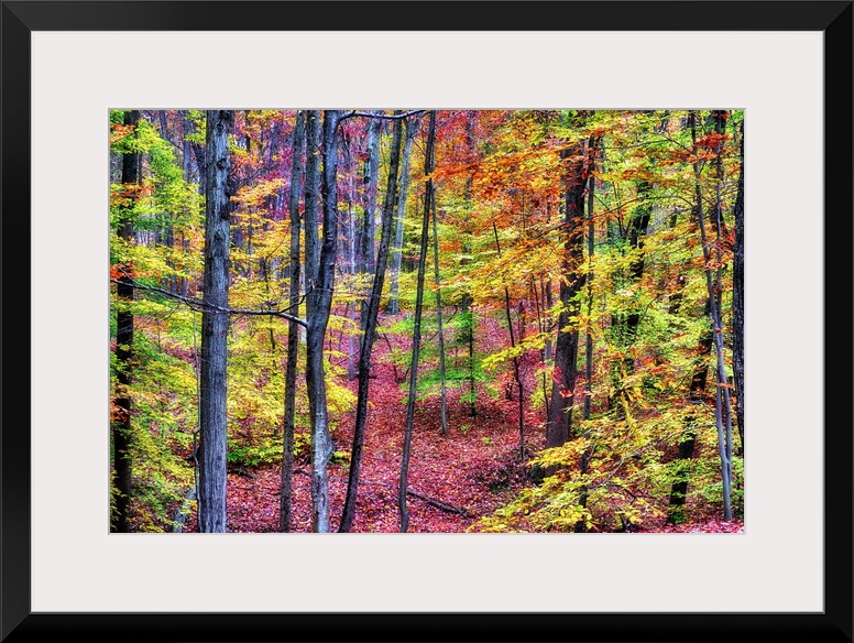 <p>A photograph of a forest in autumn foliage.</p>
