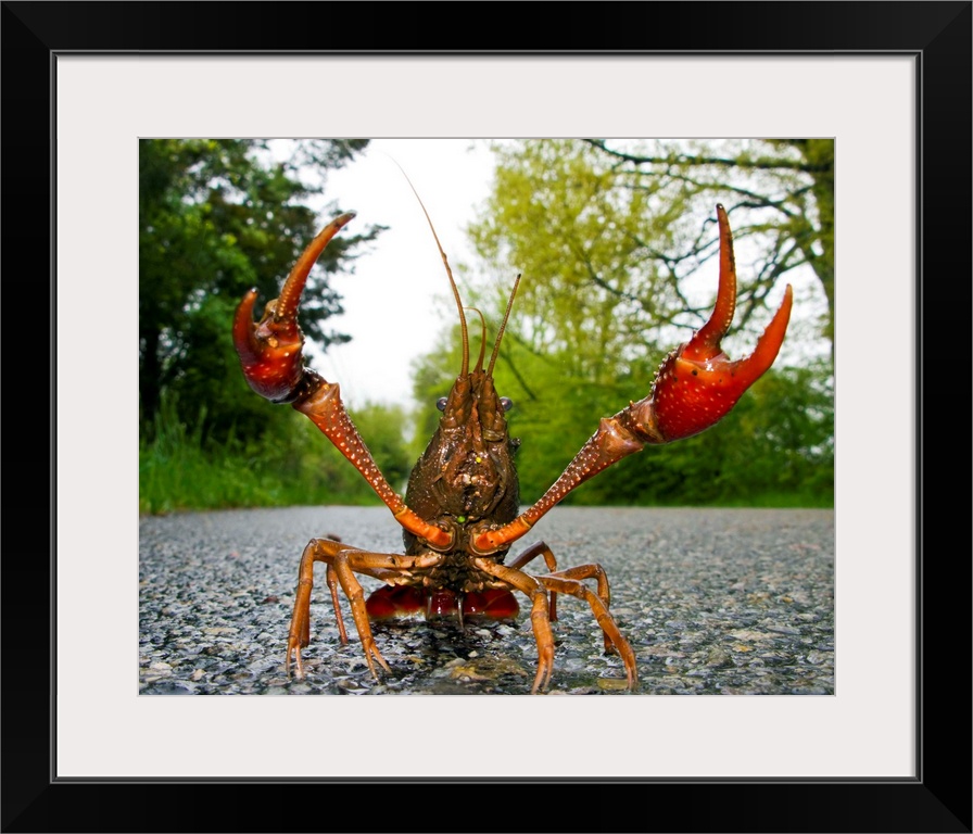 <p>North America, USA, New Jersey, Great Swamp NWR. Rusty Crayfish travelling in the rain.</p>