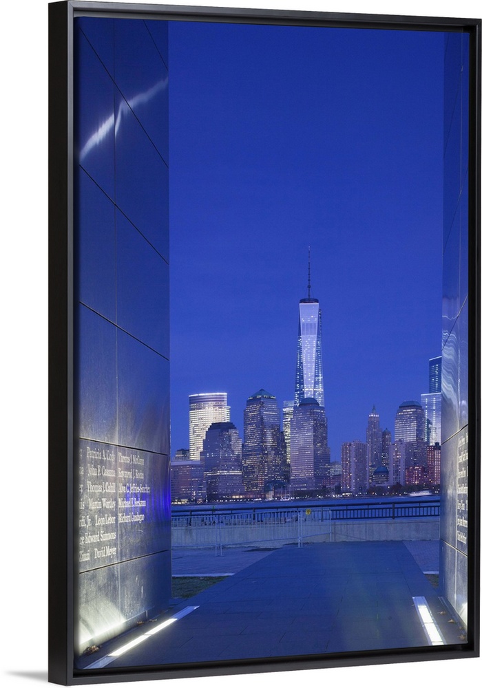 <p>USA, New Jersey, Jersey City, Liberty State Park, view through 9/11 memorial, Empty Sky, dusk</p>