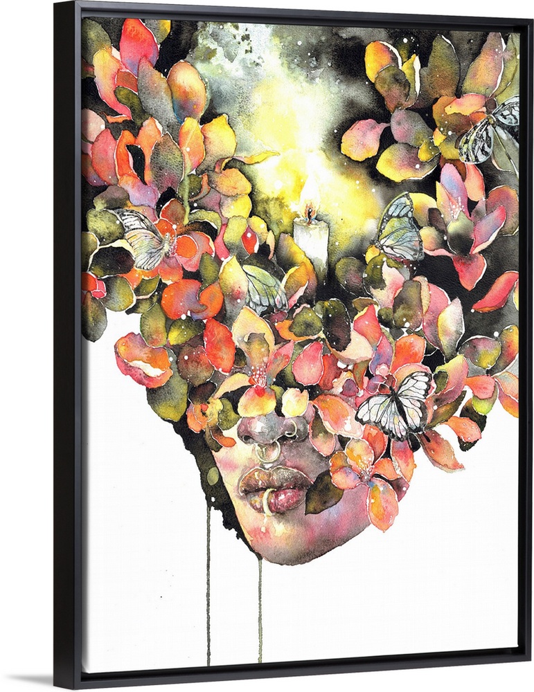 African-American Art Figurative Art Contemporary and Modern College Dorm Décor Contemporary Art Figurative Florals The Beauty Buff Pride Nyasha Painting People Surrealism Watercolor