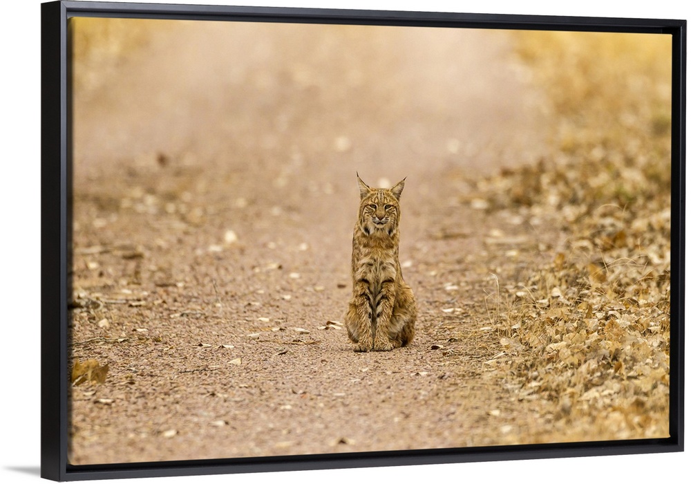 <p>USA, North America, New Mexico. Bosque Del Apache National Wildlife Refuge, Wild Bobcat Sitting On Trail.</p>