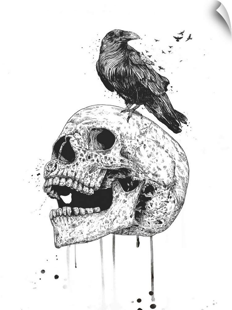 Art Eclectic Black and White Wall Art Decorative Art Graphic Art Skulls Balazs Solti Wildlife Bird Crow and Raven