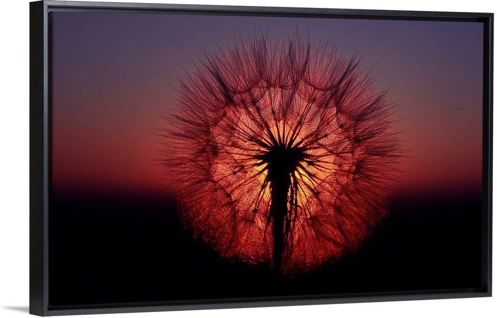 <p>Silhouetted dandelion seeds against the sun.</p>