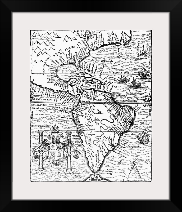 <p>New World Map, 1554. Engraved Map Of the New World From the Spanish Conquistador Pedro Cieza De Leon's 'Chronicle Of Peru,' Published In Antwerp, 1554.</p>