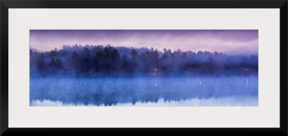 <p>USA, New York, Adirondack Mountains, Lake Placid, Mirror Lake, dawn fog</p>