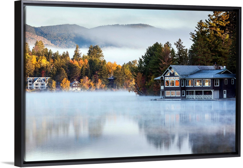 <p>USA, New York, Adirondack Mountains, Lake Placid, Mirror Lake fog at dawn</p>