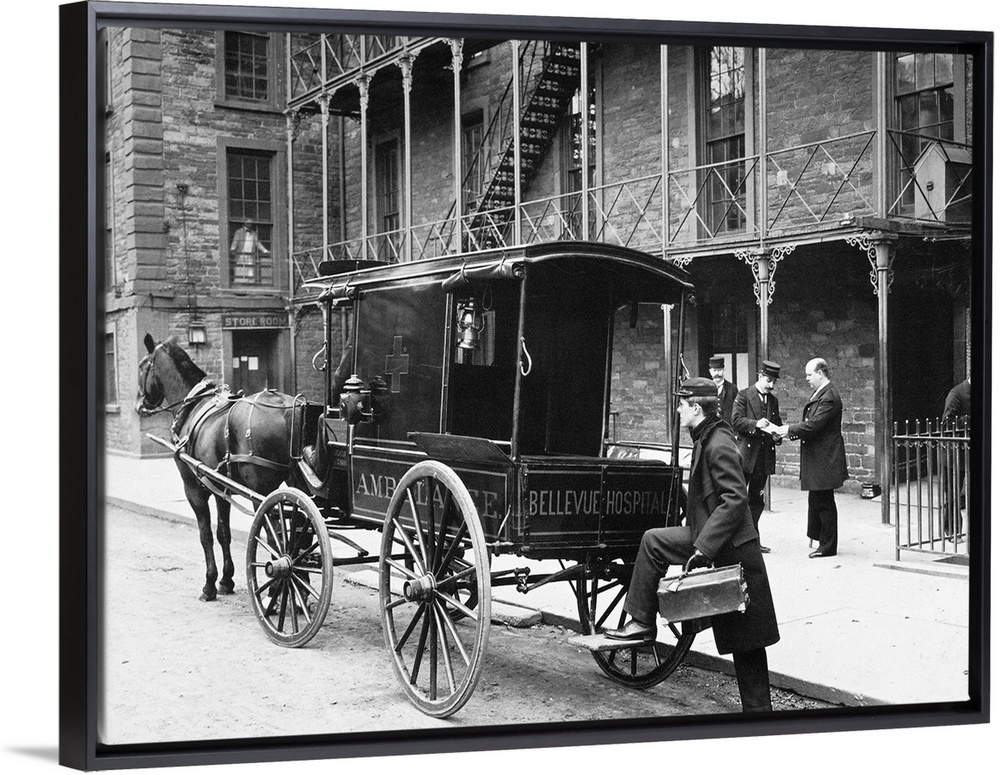 <p>The Bellevue Hospital Ambulance in New York City. Photograph, 1895.</p>