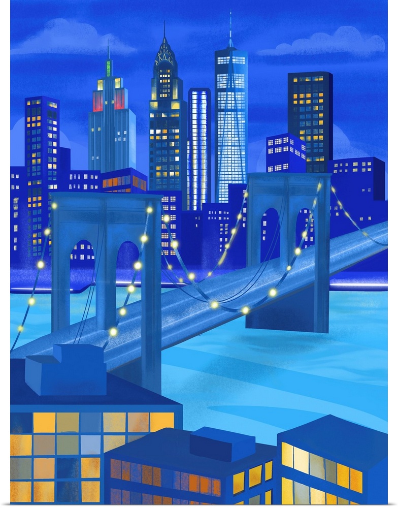 Bridge Skyscraper Art Blue Wall Art City Skylines Contemporary Art Petra Lizde United States New York New York City Brooklyn Bridge Empire State Building