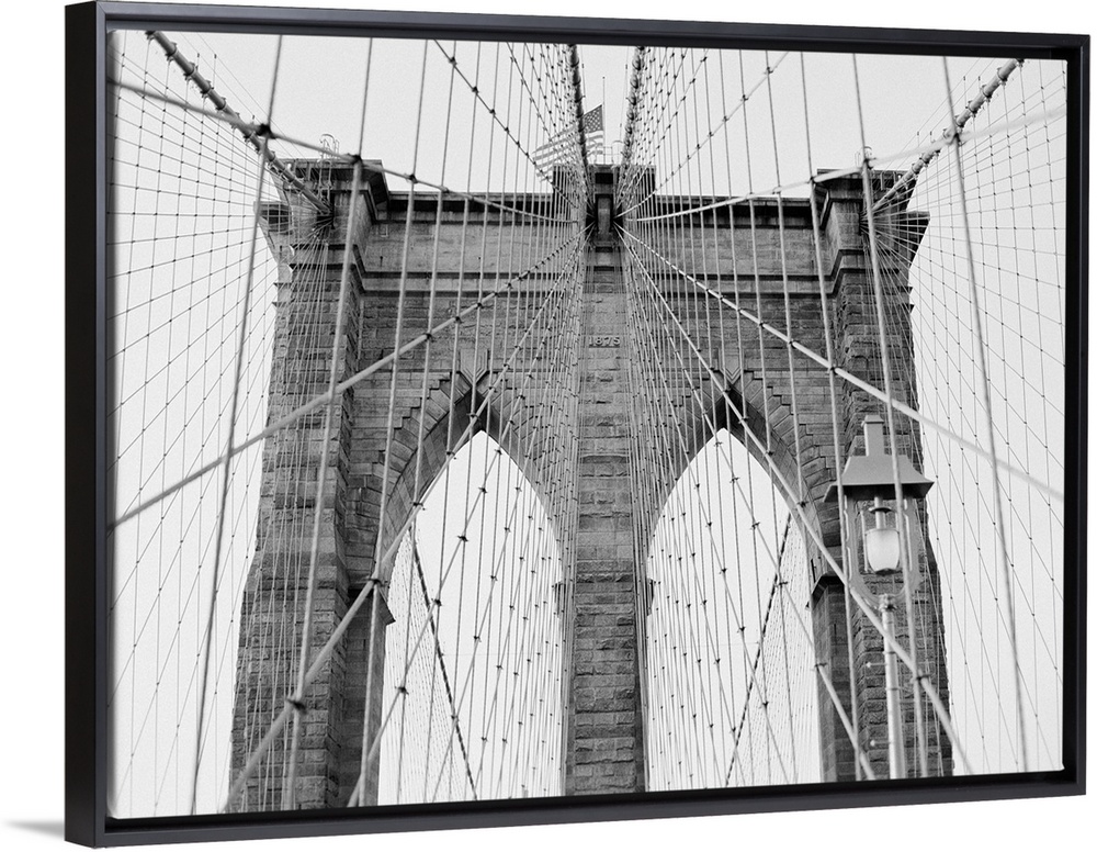 <p>Black and White architectural photograph of New York's Brooklyn Bridge.</p>