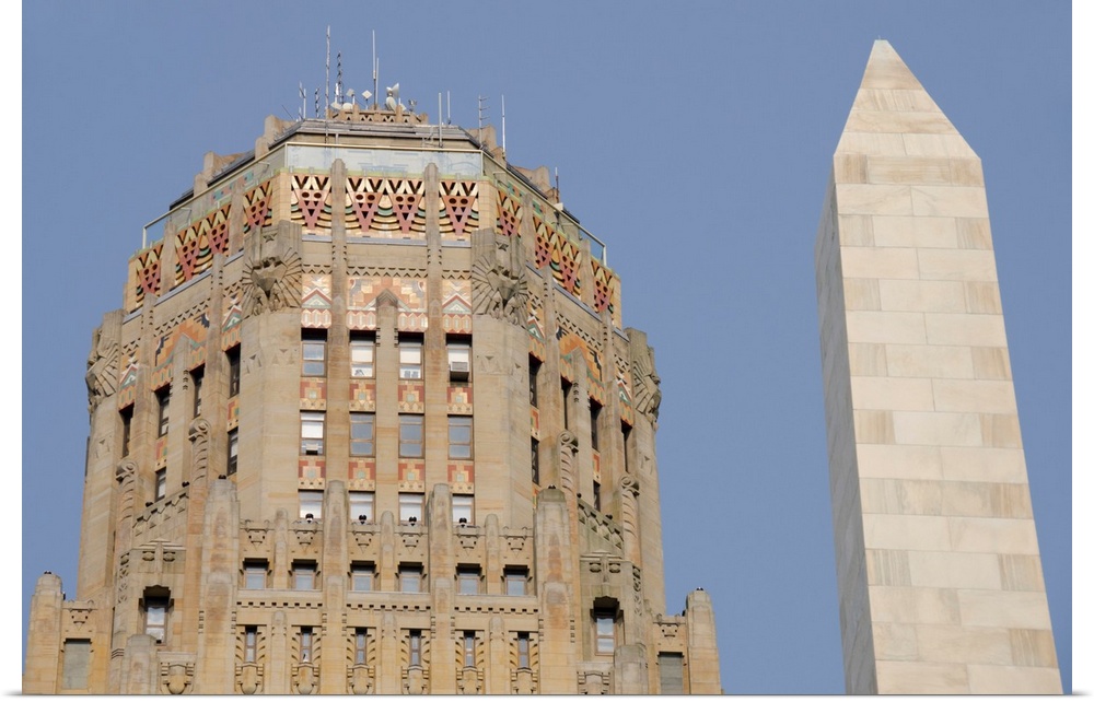 <p>New York, Buffalo, City Hall. Historic Art Deco building completed in 1931 by Dietel, Wade and Jones. Rooftop detail. The McKinley Monument, 96-foot tall obelisk in Niagara Square.</p>