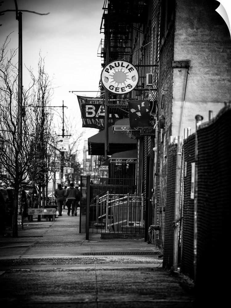 <p>A black and white photograph a sidewalk in Brooklyn.</p>