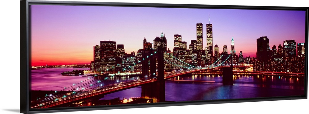 Bridge City Skylines New York City Commercial Decor Panoramas Photography Purple Wall Art New York City Brooklyn Bridge World Trade Center Wall Art