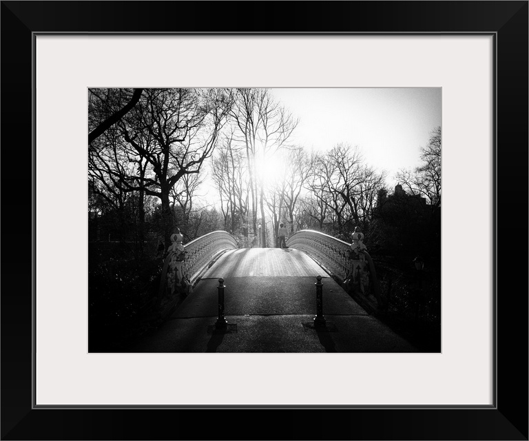 <p>Black and white photograph of a bridge in Central Park, New York city.</p>