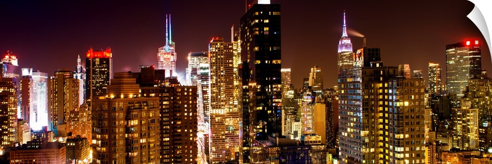<p>A photograph of New York city at night, with neon light shining bright.</p>