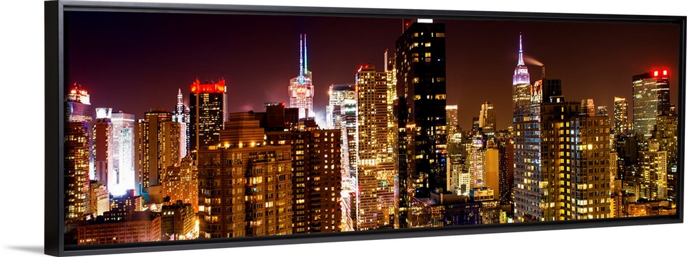 <p>A photograph of New York city at night, with neon light shining bright.</p>