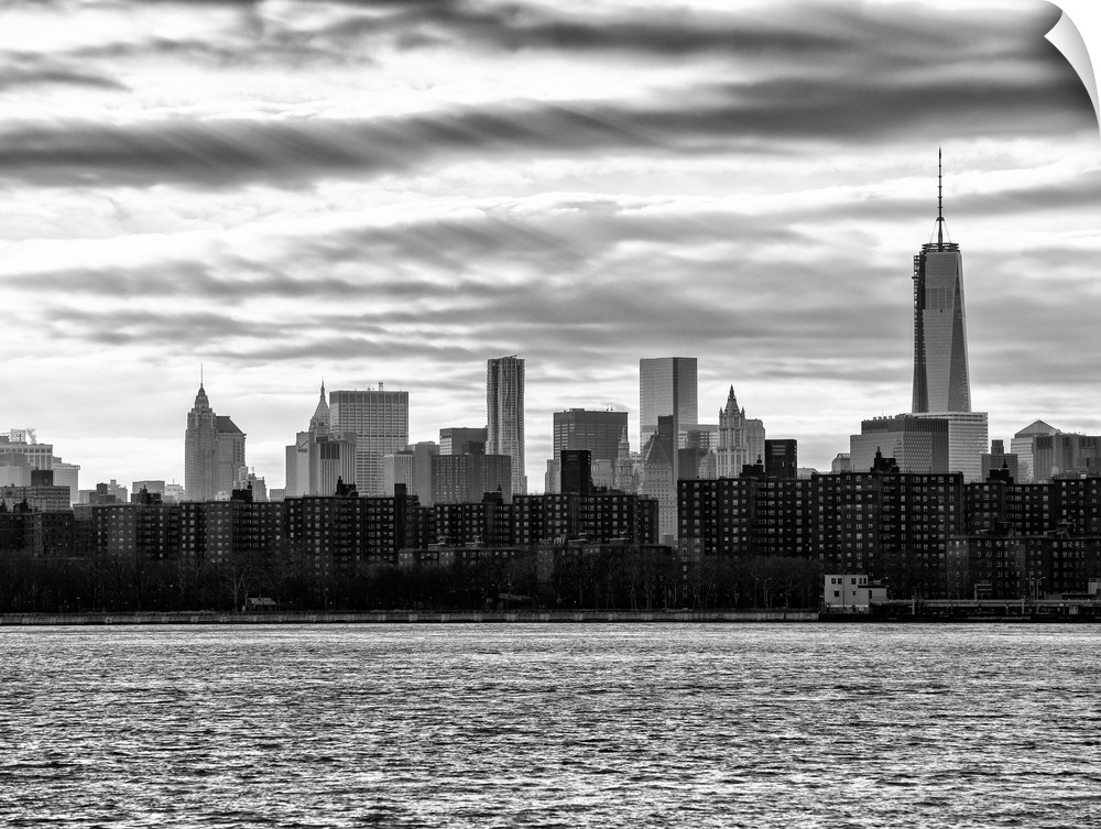 <p>A black and white photograph of the New York city skyline.</p>