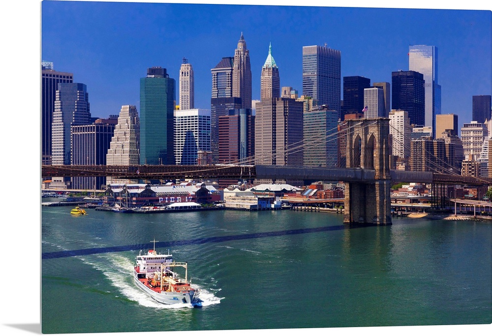 <p>USA, New York City, East River, Manhattan, Brooklyn Bridge, View from Manhattan bridge.</p>