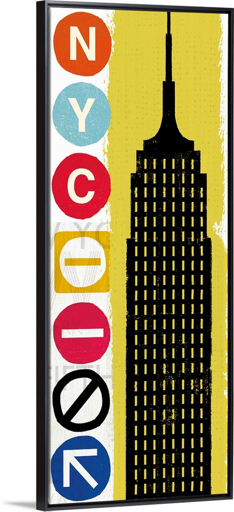 <p>Digital illustration of the Empire State Building with "NYC" on the side made out of subway icons.</p>