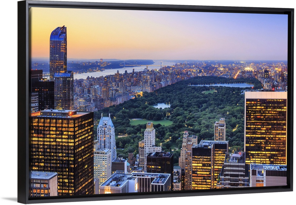 <p>USA, New York City, Manhattan, Central Park, View from the Top of the Rock Observation Deck of Rockefeller Center at sunset.</p>