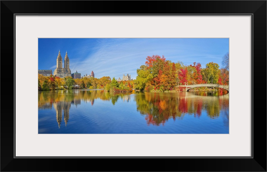 <p>USA, New York City, Manhattan, Central Park, San Remo Apartment towers and the Bow Bridge.</p>