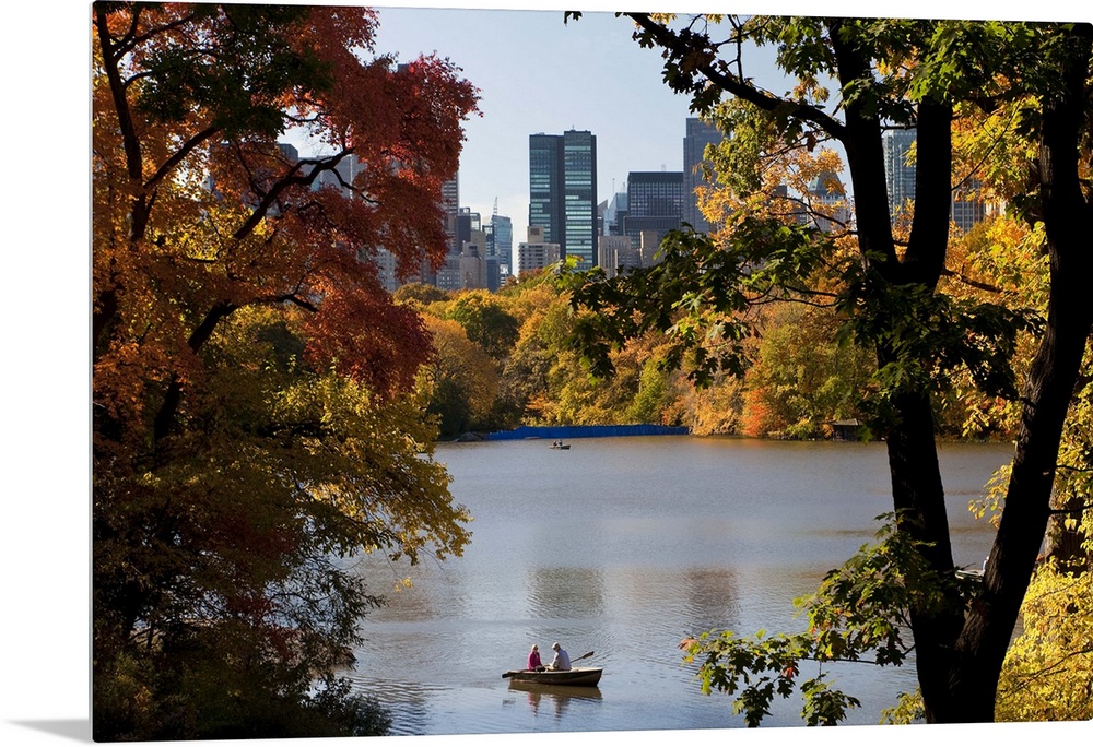 <p>USA, New York City, Manhattan, Central Park and the Grand buildings along Central Park West viewed across the lake in autumn</p>