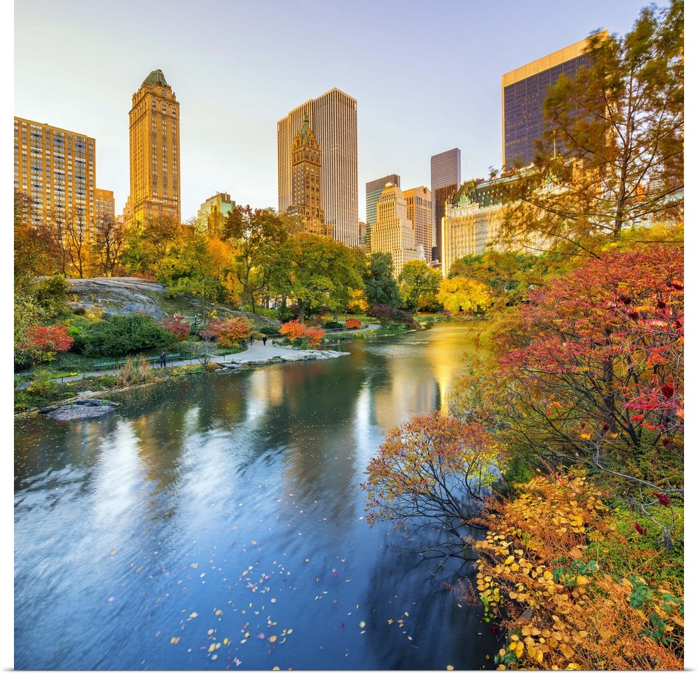 <p>USA, New York City, Manhattan, Central Park, The Pond, Fifth Avenue skyline in the background.</p>