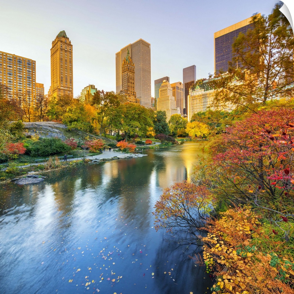 <p>USA, New York City, Manhattan, Central Park, The Pond, Fifth Avenue skyline in the background.</p>
