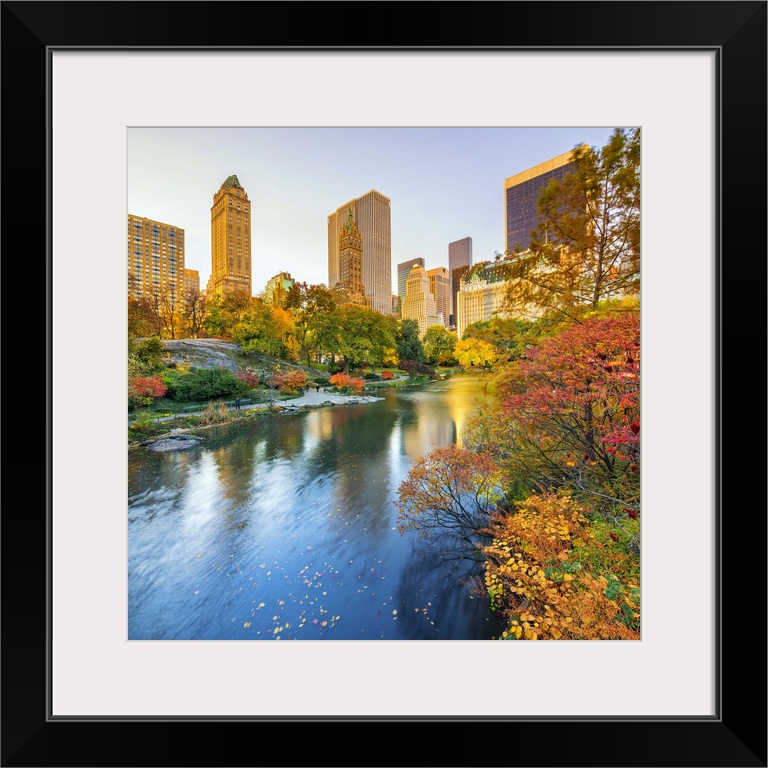 <p>USA, New York City, Manhattan, Central Park, The Pond, Fifth Avenue skyline in the background.</p>
