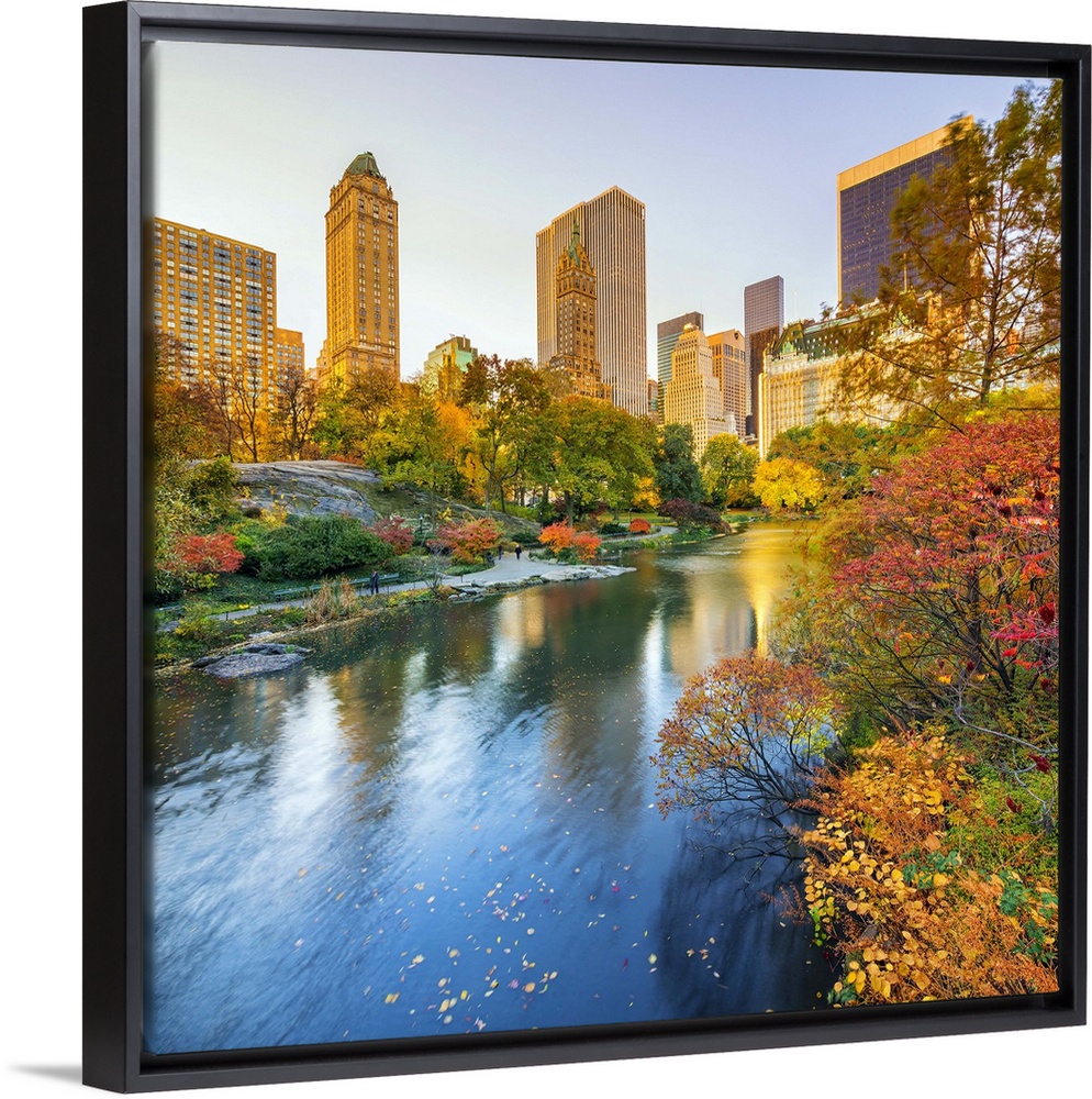 <p>USA, New York City, Manhattan, Central Park, The Pond, Fifth Avenue skyline in the background.</p>