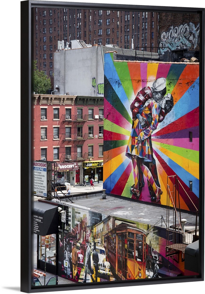 <p>USA, New York City, Manhattan, Chelsea, Eduardo Kobra's Mural of Alfred Eisenstaedts Photo VJ Day, The Kiss, along the High Line.</p>