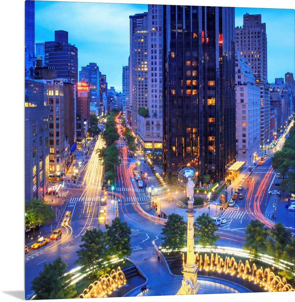 <p>New York, New York City, Manhattan, Columbus Circle, Columbus Circle and Broadway at night.</p>