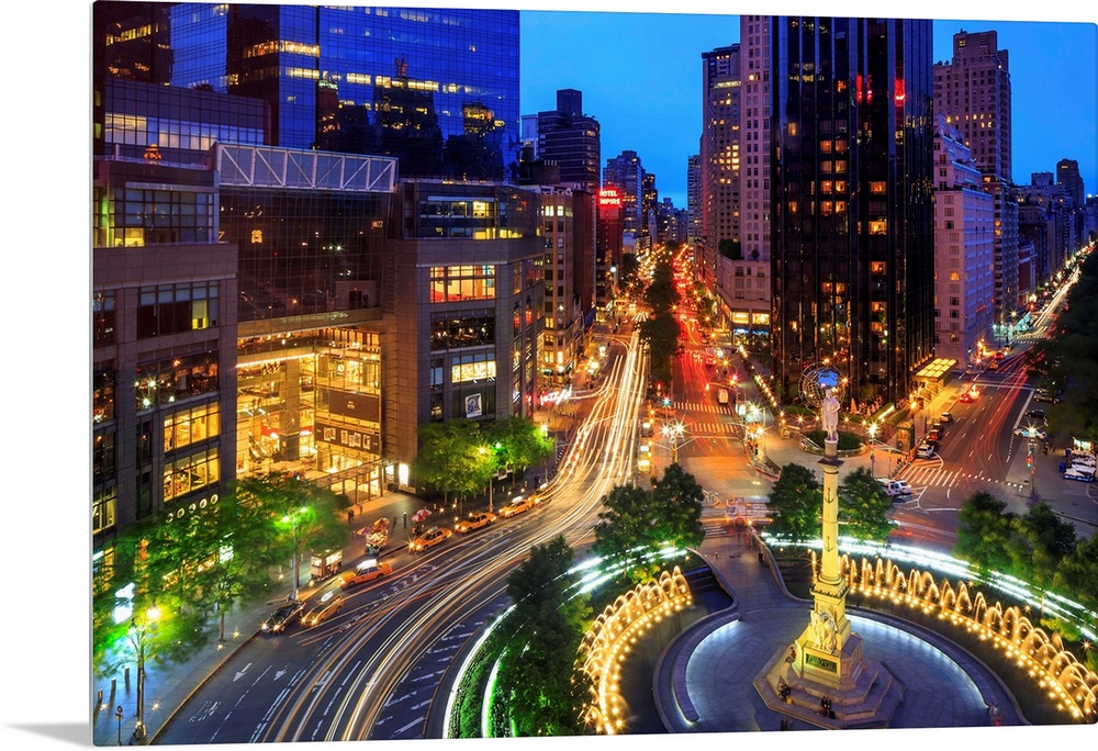 <p>New York, New York City, Manhattan, Columbus Circle, Columbus Circle and Broadway at night.</p>