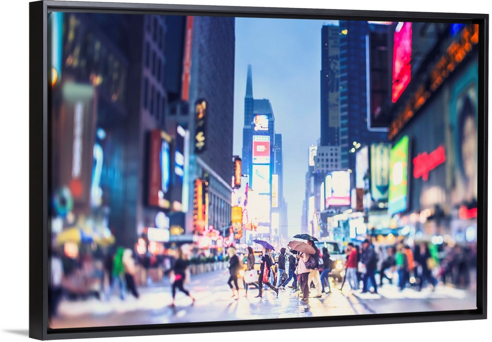 <p>New York, New York City, Manhattan, Times Square, Pedestrians crossing the street at night.</p>
