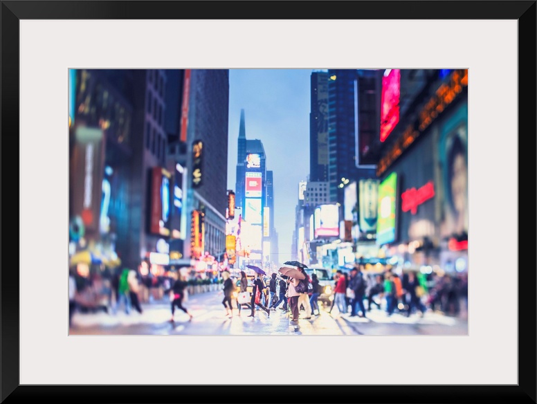 <p>New York, New York City, Manhattan, Times Square, Pedestrians crossing the street at night.</p>
