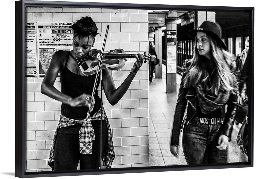 <p>USA, New York City, Musician in the subway.</p>