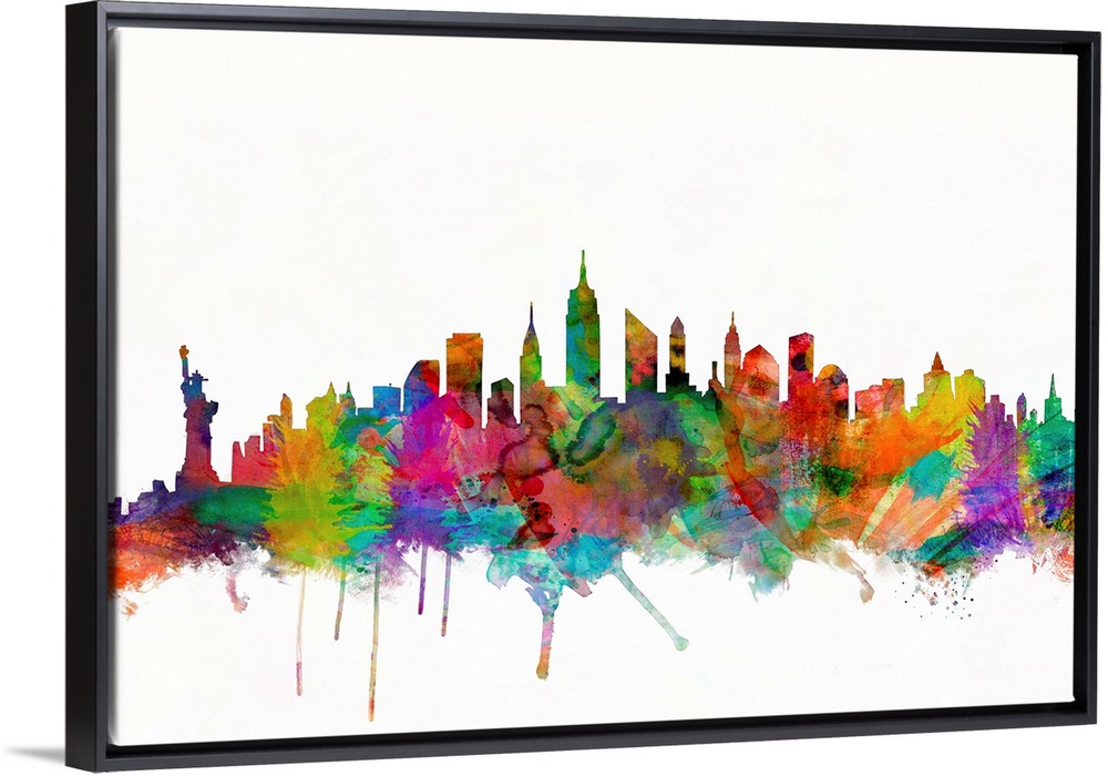 <p>Watercolor artwork of the New York City skyline against a white background.</p>