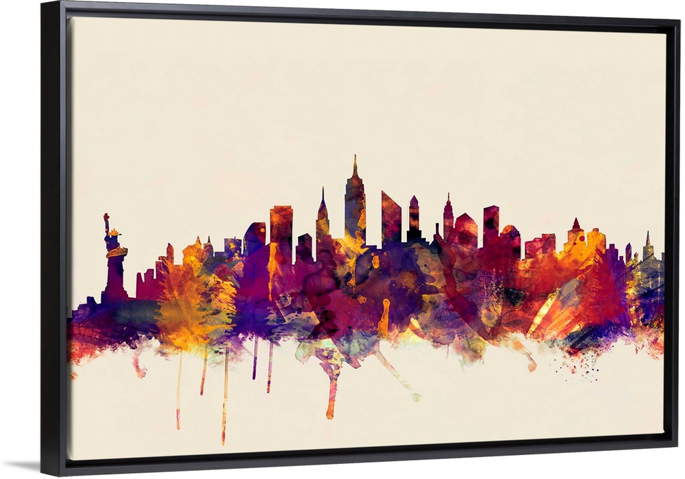 <p>Contemporary artwork of the New York city skyline in watercolor paint splashes.</p>