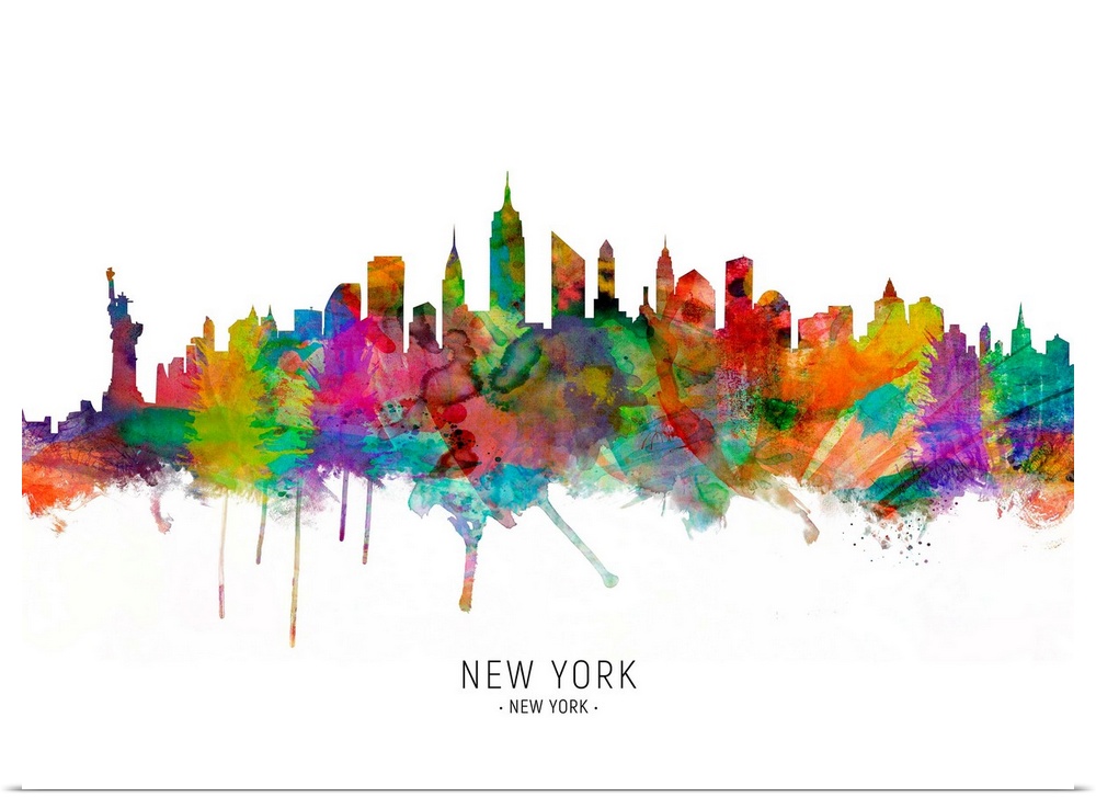 <p>Watercolor art print of the skyline of New York City, United States.</p>