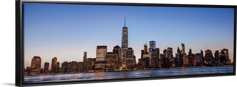 <p>Panoramic view of the New York City skyline over Manhattan in the morning.</p>