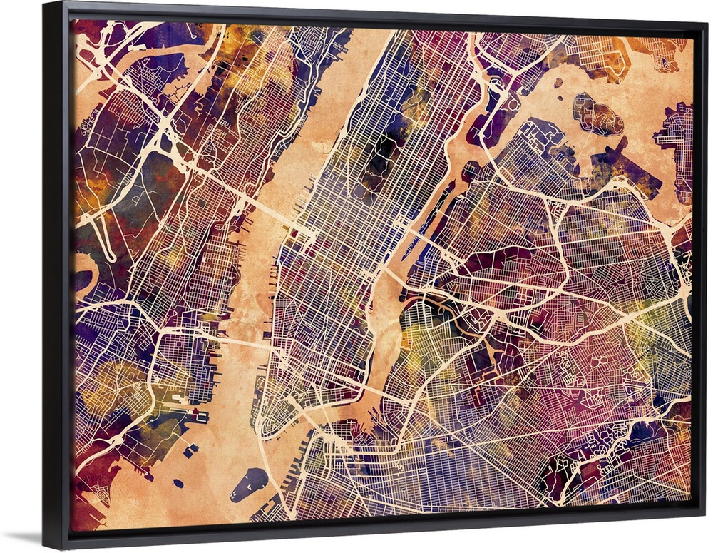 Art Maps Art Maps Maps by City Street Maps Painting New York New York City Michael Tompsett Watercolor