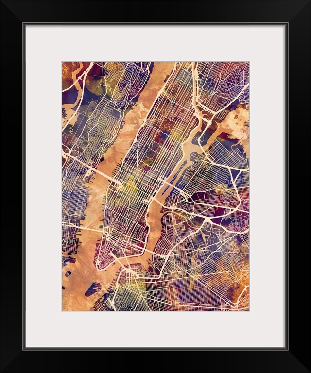 <p>A watercolour street map of Manhattan, New York City</p>