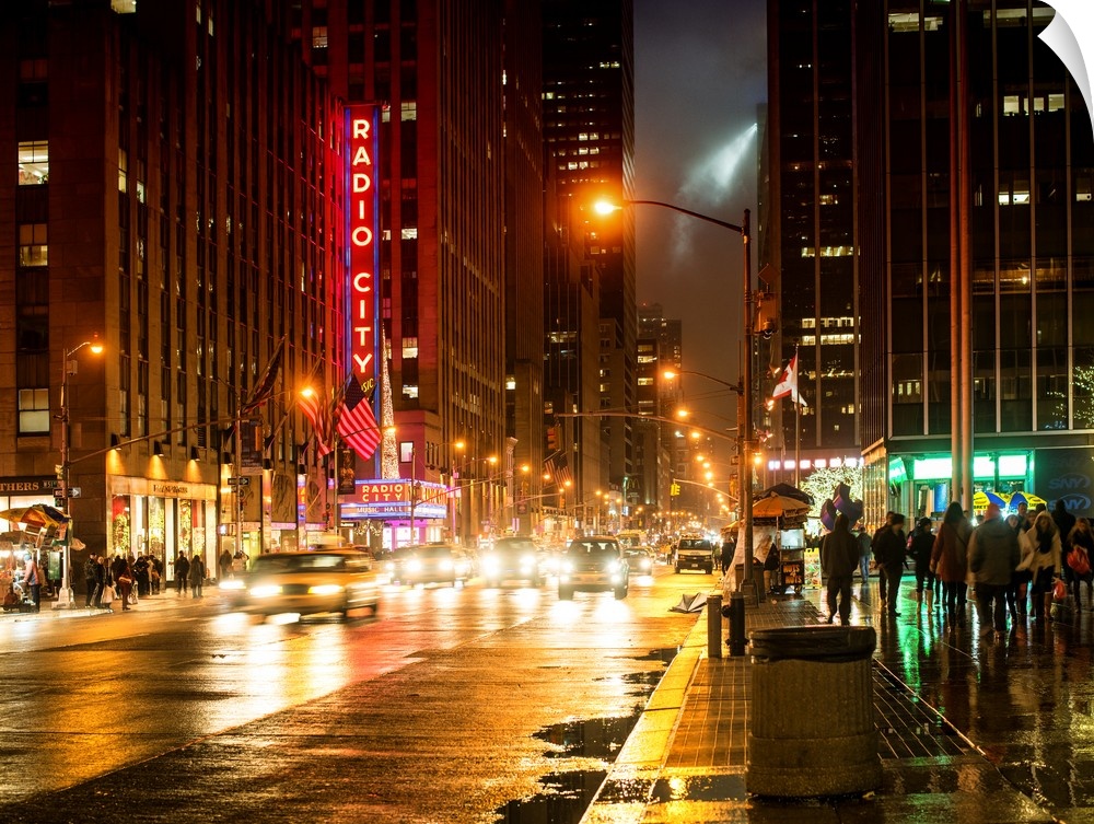 <p>Art photograph of New York city at night, with the Radio City sign lit up in neon.</p>