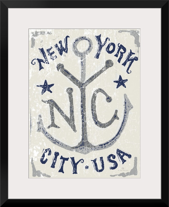 <p>Illustrated vintage, worn artwork of an anchor and typography that reads New York City, USA.</p>