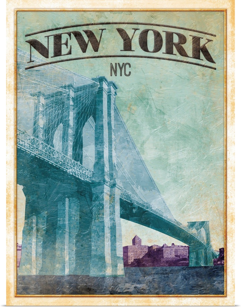 Art Decorative Art Graphic Art Jace Grey New York New York City Brooklyn Bridge Travel Posters Retro Travel Posters