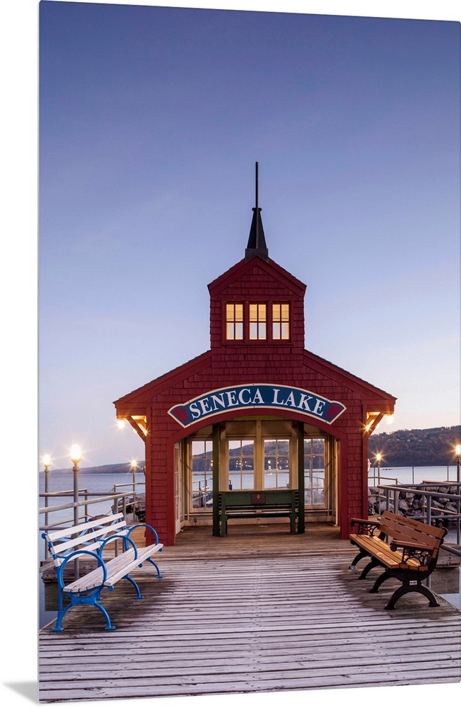 <p>USA, New York, Finger Lakes Region, Watkins Glen, Seneca Lake pier, dawn</p>