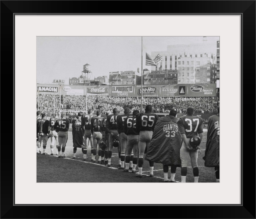 <p>New York Giants football team during a moment of prayer for President John Kennedy. Nov. 24, 1963. The game was well attended, but not telecast. All TV networks ran news until the end of Kennedy's funeral.</p>