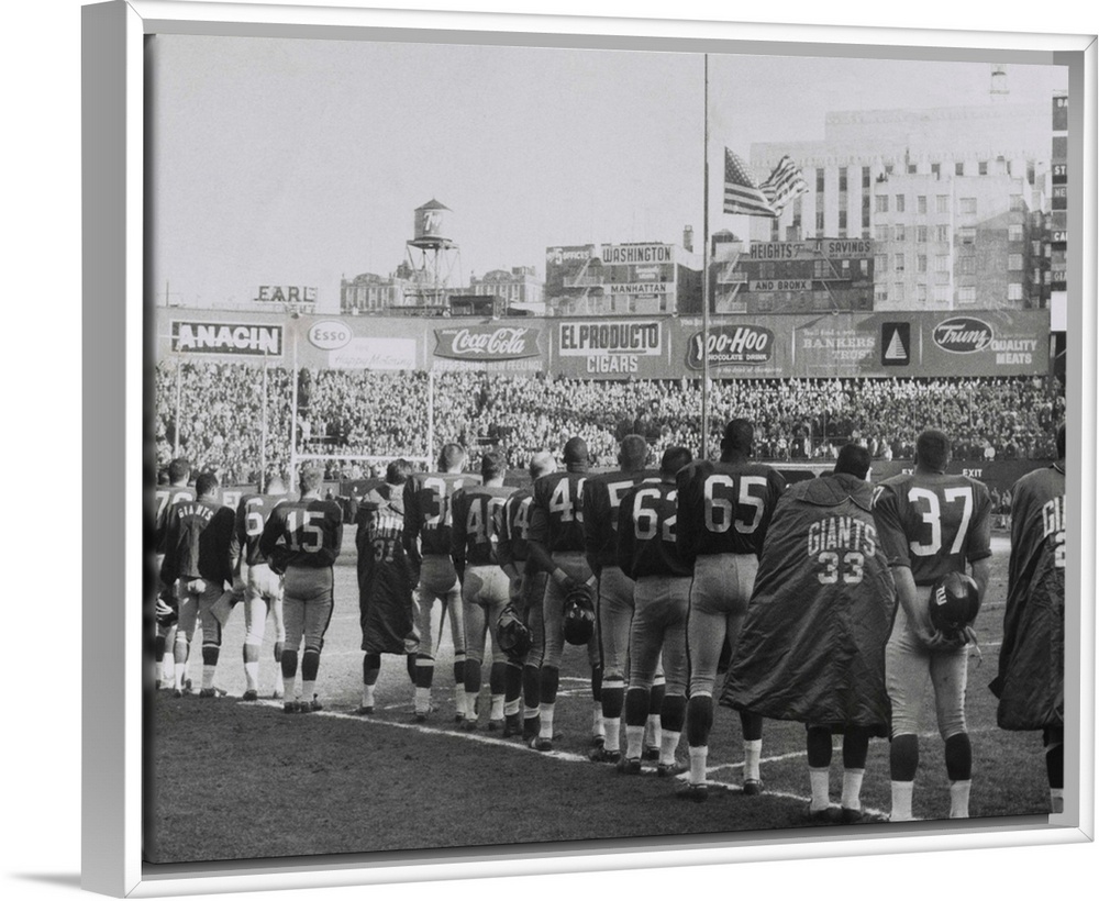 <p>New York Giants football team during a moment of prayer for President John Kennedy. Nov. 24, 1963. The game was well attended, but not telecast. All TV networks ran news until the end of Kennedy's funeral.</p>