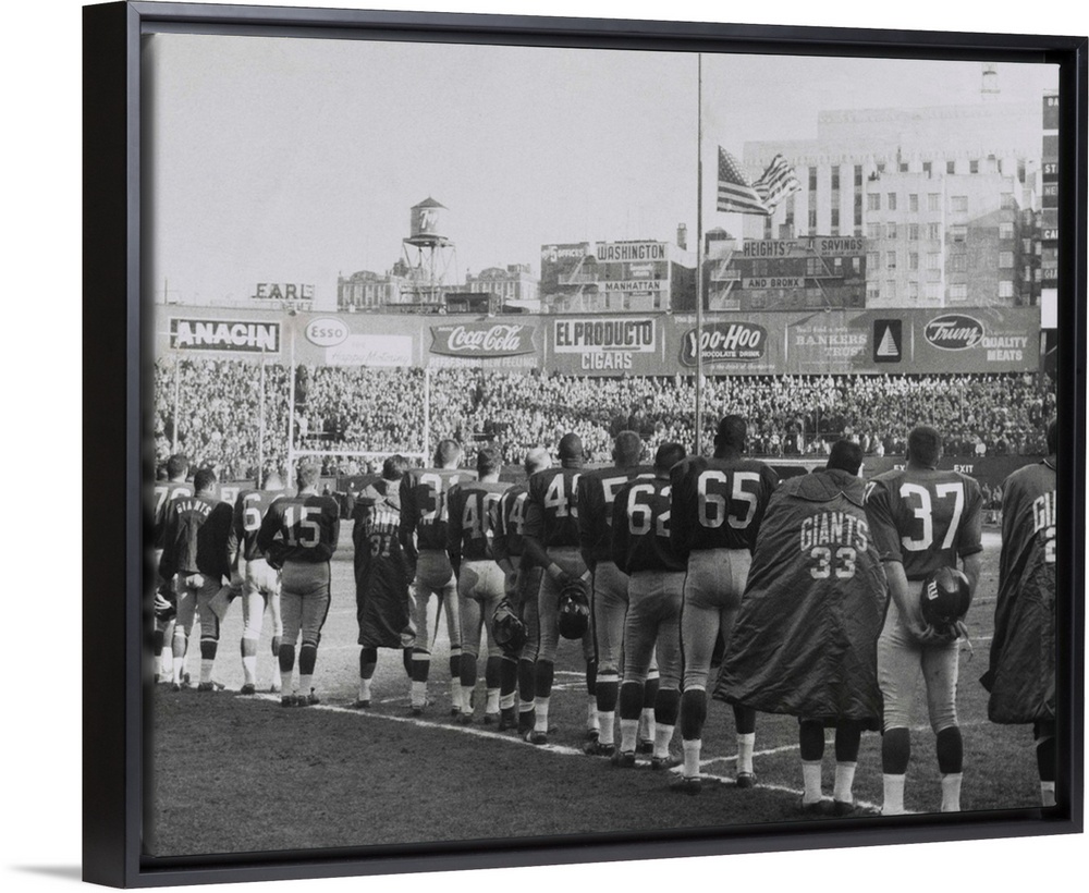 <p>New York Giants football team during a moment of prayer for President John Kennedy. Nov. 24, 1963. The game was well attended, but not telecast. All TV networks ran news until the end of Kennedy's funeral.</p>
