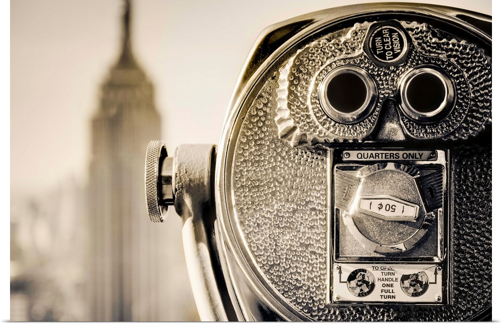 <p>USA, New York, Manhattan, Midtown, Empire State Building from Top of The Rock, Rockefeller Center, Tourist Binoculars</p>